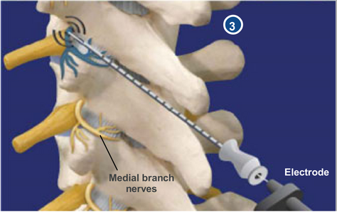 The physician uses the electrode to heat and cauterize the nerve, disrupting its ability to communicate with the brain and blocking the pain signals. Multiple nerves may require treatment.